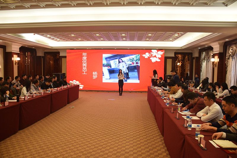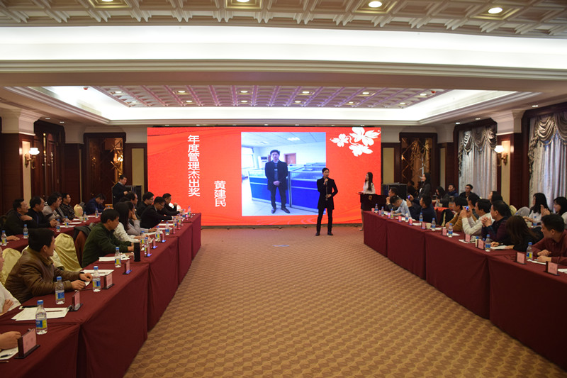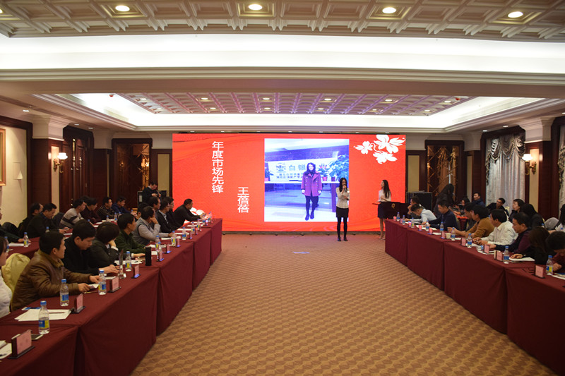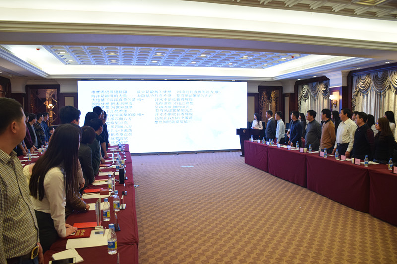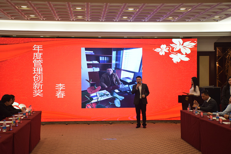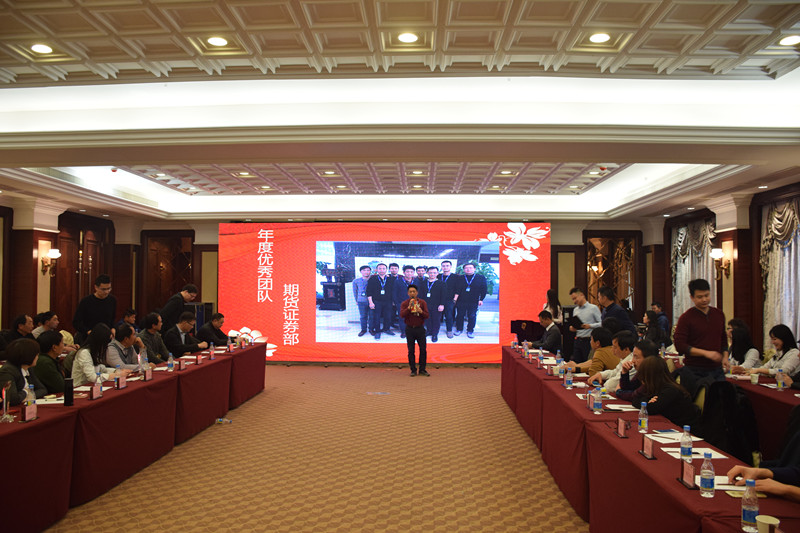 会上表彰了2016年评选的优秀个人和团队,各奖项的获得者分别是年度管理杰出奖:白银仓储公司副总经理黄建明;年度市场先锋获得者:棉贸一部总监王蓓蓓;年度管理创新奖:粮棉油事业部总经理李春;年度优秀员工:白银资管公司市场部总监杨梦;年度特殊贡献奖:白银资管公司总经理助理郭银英;年度优秀团队:期货证券部。董事长李绪双先生和总裁李攀峰先生为获奖的人员和团队颁发奖杯、奖状、奖金。会议尾声大家共同齐唱公司司歌《为梦想领跑》。